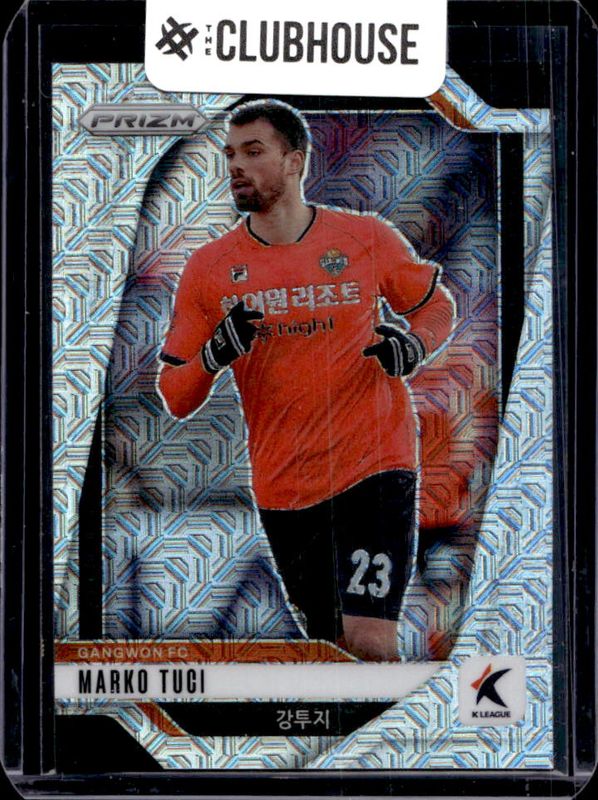 Marko Tuci's Soccer cards are available in at least 2 sets. Marko Tuci's biggest 7-day price movers are 2025 Prizm K League #26 Mojo /25, 2025 Prizm K League #26 Gold Power /5, and 2025 Prizm K League #26 Base Autographs - Silver /30.