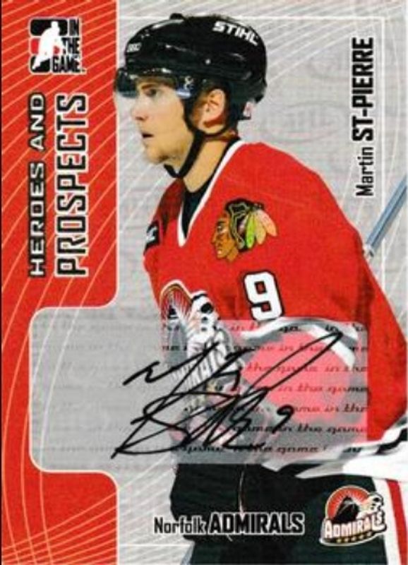 Martin St Pierre's Hockey cards are available in at least 5 sets. Martin St Pierre's biggest 7-day price movers are 2005 In The Game Heroes & Prospects #A-MSP Autographs Series II, 2005 In The Game Heroes & Prospects #227 Base, and 2005 In The Game Heroes & Prospects #227 Toronto Spring Expo Silver /10.