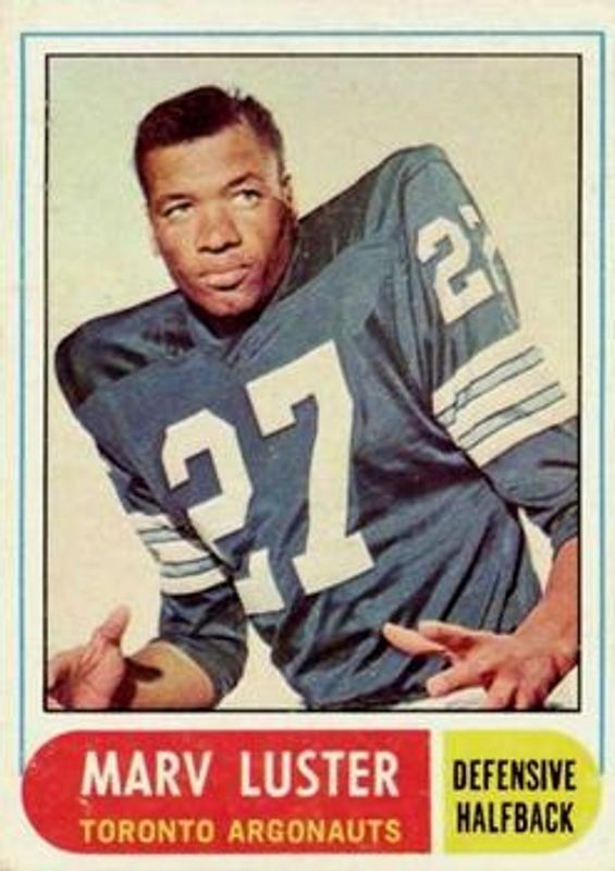 Marv Luster's Football cards are available in at least 4 sets. Marv Luster's biggest 7-day price movers are 1968 O-Pee-Chee CFL #32 Base, 1970 O-Pee-Chee CFL #3 Base, and 1971 O-Pee-Chee CFL #7 Base.
