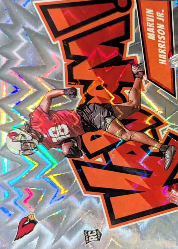 Marvin Harrison Jr.'s Football cards are available in at least 58 sets. Marvin Harrison Jr.'s biggest 7-day price movers are 2024 Prizm #RG-MHJ Rookie Gear, 2024 Prizm #375 Pink Wave, and 2024 Optic #276 Blue Hyper.