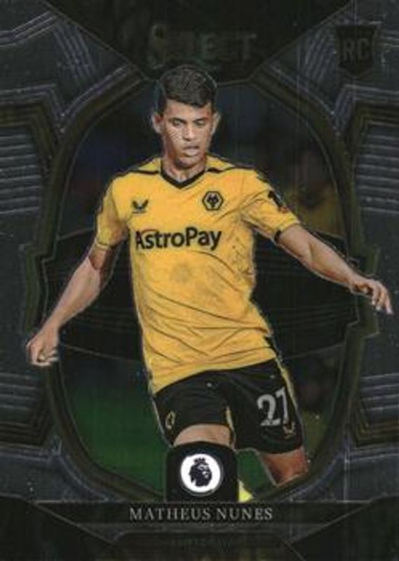 Matheus Nunes' Soccer cards are available in at least 28 sets. Matheus Nunes' biggest 7-day price movers are 2022 Select Premier League #99 Base, 2022 Select Premier League #99 Gold /10, and 2022 Select FIFA #169 Orange /60.