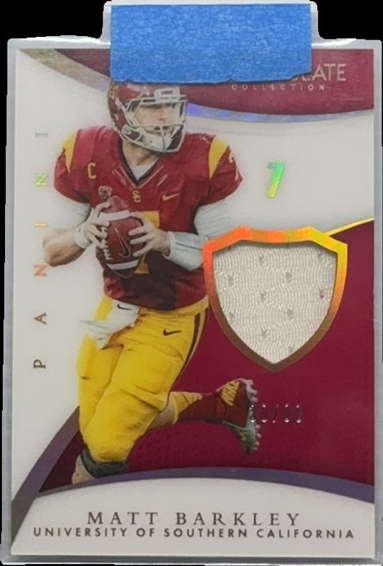 Matt Barkley's Multi-Sport cards are available in at least 7 sets. Matt Barkley's biggest 7-day price movers are 2015 Panini Immaculate Collection Collegiate #26 Immaculate Numbers Memorabilia /99, 2015 Panini National Treasures Collegiate #75 Materials Signatures - Printing Plates Yellow /1, and 2015 Panini National Treasures Collegiate #75 Materials Signatures - Black /5.