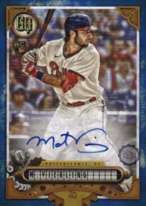 Matt Vierling's Baseball cards are available in at least 16 sets. Matt Vierling's biggest 7-day price movers are 2022 Topps Gypsy Queen #GQA-MV GQ Autographs - Indigo /150, 2022 Topps Gypsy Queen #GQA-MV GQ Autographs - Missing Nameplate, and 2022 Topps Gypsy Queen #GQA-MV GQ Autographs - Missing Black Plate /25.