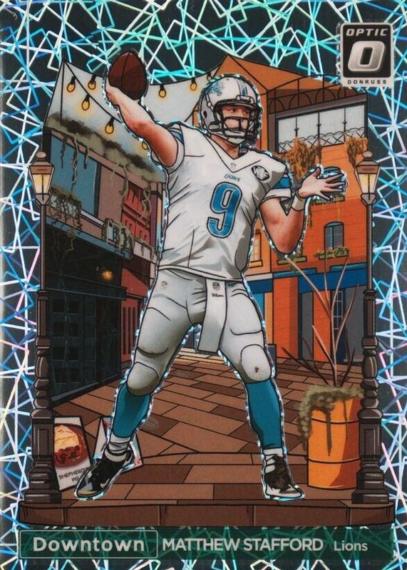 Matthew Stafford's Football cards are available in at least 192 sets. Matthew Stafford's biggest 7-day price movers are 2023 Optic #8 International Downtown /(SSP), 2025 Mosaic #13 Visionary /(SSP), and 2025 Mosaic #96 Genesis /(SSP).