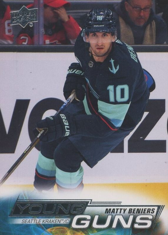 Matty Beniers' Hockey cards are available in at least 59 sets. Matty Beniers' biggest 7-day price movers are 2022 Upper Deck #213 Young Guns Base, 2022 Parkhurst #PK-1 Parkies - Red, and 2022 Parkhurst #A-13 Retro Achievements.