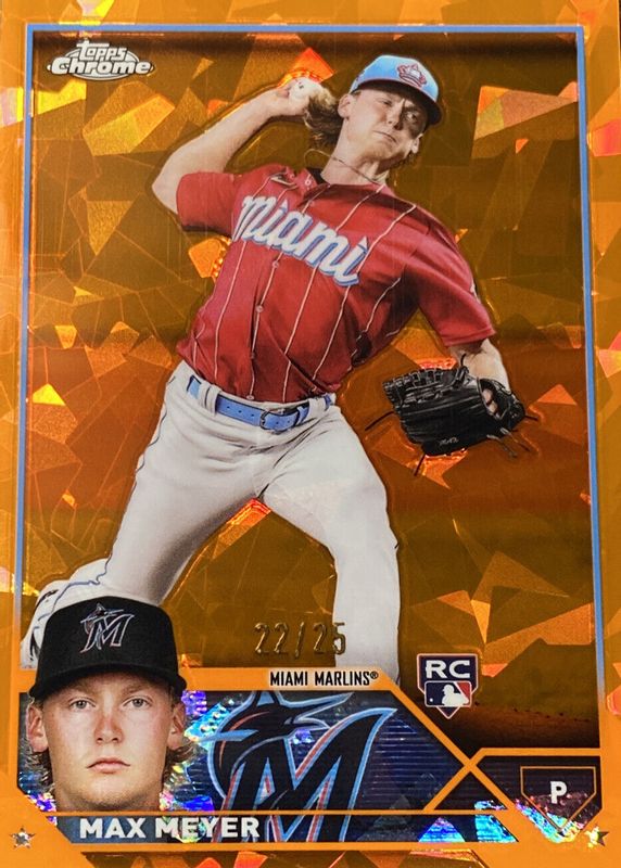 Max Meyer's Baseball cards are available in at least 21 sets. Max Meyer's biggest 7-day price movers are 2023 Topps Chrome Sapphire Edition #388 Orange /25, 2023 Topps Chrome Sapphire Edition #388 Padparadscha /1, and 2023 Topps Gilded Collection #134 Base /99.