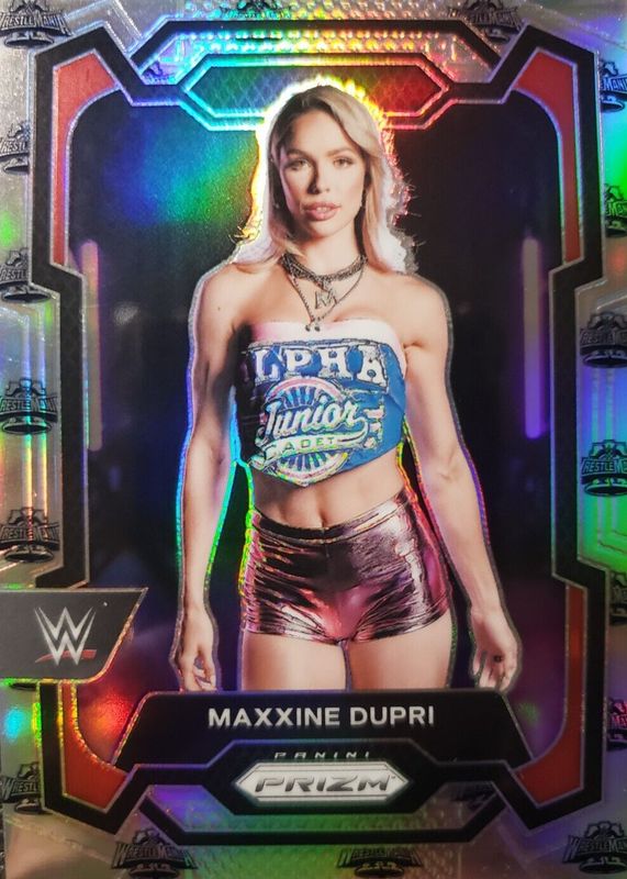 Maxxine Dupri's Wrestling cards are available in at least 12 sets. Maxxine Dupri's biggest 7-day price movers are 2024 Prizm WWE #129 WrestleMania /40, 2023 Prizm WWE #85 Mojo /25, and 2024 Prizm WWE #129 Lucky Envelopes /8.