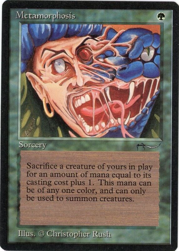 Metamorphosis' Magic: The Gathering cards are available in at least 1 sets. Metamorphosis' biggest 7-day price movers are 1993 Arabian Nights Base.