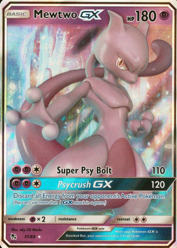 Mewtwo GX's Pokemon cards are available in at least 4 sets. Mewtwo GX's biggest 7-day price movers are 2019 Sun & Moon: Hidden Fates #31/68 Holo, 2017 Sun & Moon: Shining Legends #78/73 Holo (Secret Shining), and 2017 Sun & Moon: Shining Legends #72/73 Holo (Full Art).