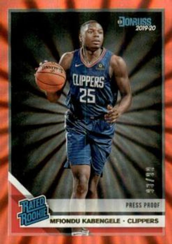 Mfiondu Kabengele's Basketball cards are available in at least 26 sets. Mfiondu Kabengele's biggest 7-day price movers are 2019 Donruss #225 Press Proof Red Laser /99, 2019 Donruss #24 Great X Pectations - Holo Camo /10, and 2019 Donruss #225 Rated Rookies Signatures - Press Proof Gold Laser /10.