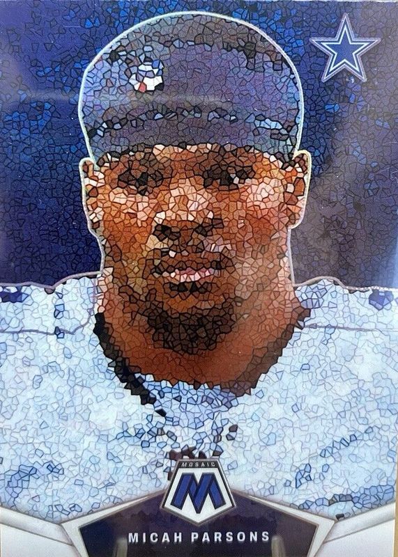 Micah Parsons' Football cards are available in at least 90 sets. Micah Parsons' biggest 7-day price movers are 2021 Mosaic #257 NFL Debut - Silver, 2021 Optic #245 Holo, and 2021 Optic #245 Blue Scope.