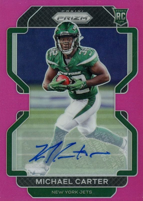 Michael Carter's Football cards are available in at least 17 sets. Michael Carter's biggest 7-day price movers are 1990 Action Packed All-Madden #42 Base, 2021 Select #371 Field Level Tri-Color /75, and 2021 Optic #RGK-19 Rookie Gridiron Kings - Gold /10.