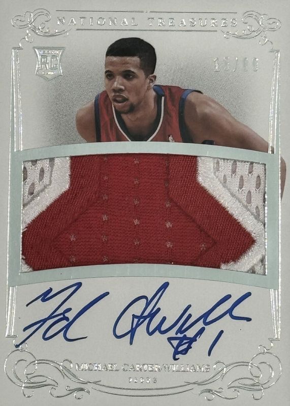 Michael Carter-Williams' Basketball cards are available in at least 39 sets. Michael Carter-Williams' biggest 7-day price movers are 2013 National Treasures #119 Rookie Patch Auto /99, 2013 Prizm #265 Black Mosaic /1, and 2013 National Treasures #119 Rookie Patch Auto - Platinum /5.