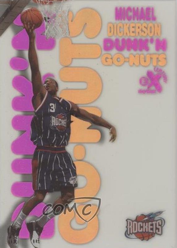 Michael Dickerson's Basketball cards are available in at least 52 sets. Michael Dickerson's biggest 7-day price movers are 1998 Skybox E-X Century #18DG Dunk 'N Go-Nuts, 1998 Skybox E-X Century #70 Essential Credentials Future (/21), and 1998 Skybox E-X Century #70 Essential Credentials Now (/70).