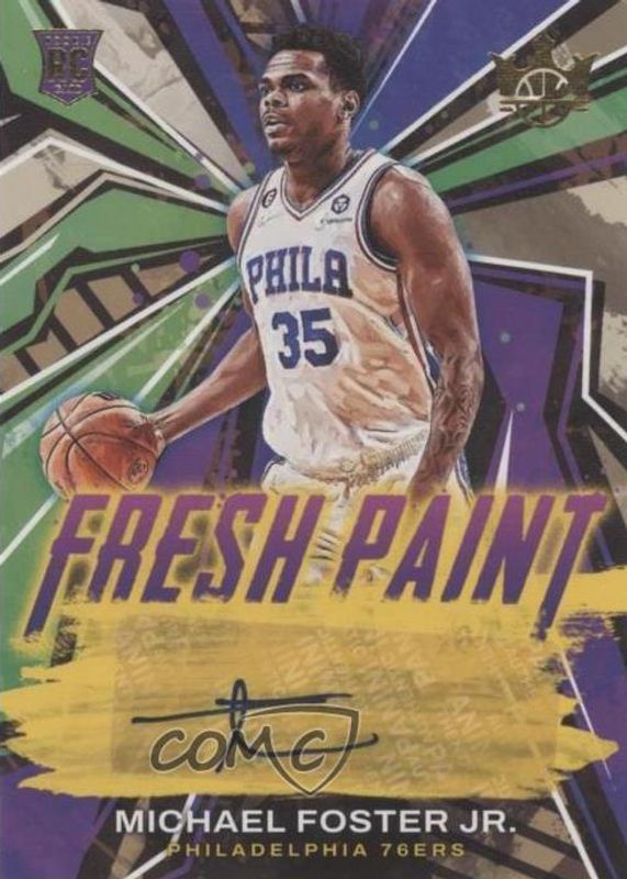 Michael Foster Jr.'s Basketball cards are available in at least 4 sets. Michael Foster Jr.'s biggest 7-day price movers are 2022 Court Kings #45 Fresh Paint Autographs /199, 2023 Topps G-League #AB-25 Ankle Breaker, and 2022 Chronicles Draft Picks #CT-MFJ College Ticket - Black.