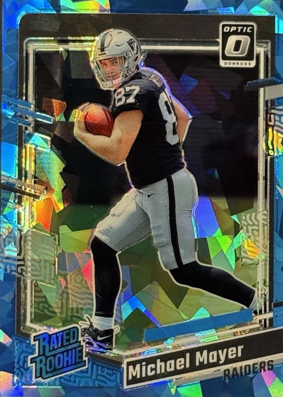 Michael Mayer's Football cards are available in at least 23 sets. Michael Mayer's biggest 7-day price movers are 2023 Optic #260 Rated Rookie Autographs (/99), 2023 Optic #260 Ice /15, and 2023 Select #57 Concourse Copper Die-Cut /299.