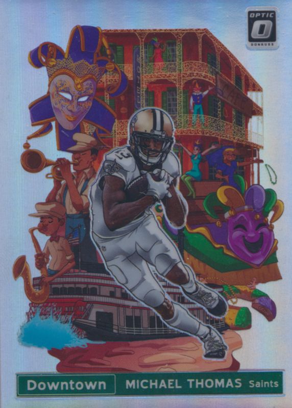 Michael Thomas' Football cards are available in at least 115 sets. Michael Thomas' biggest 7-day price movers are 2020 Optic #DT-16 Downtown /(SSP), 2016 Prizm #230 Orange /299, and 2016 Prizm #RA-MTH Rookie Autographs - Purple Scope /99.
