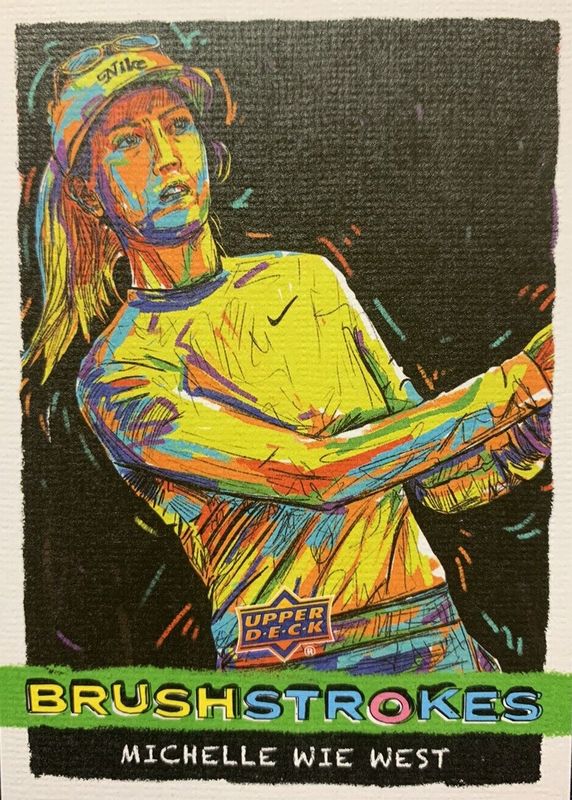 Michelle Wie West's Golf cards are available in at least 3 sets. Michelle Wie West's biggest 7-day price movers are 2024 Upper Deck #BR-MW Brushstrokes /(SSP), 2024 Upper Deck #DD-14 Diagrams of Dominance /(SSP), and 2024 Upper Deck #CFL-20 Cleared for Launch /(SSP).
