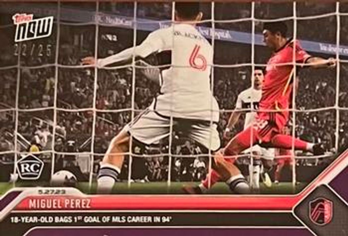 Miguel Perez's Soccer cards are available in at least 3 sets. Miguel Perez's biggest 7-day price movers are 2023 Topps NOW MLS #121 Purple /25, 2023 Topps NOW MLS #121 Gold /1, and 2023 Topps NOW MLS #121 Base.