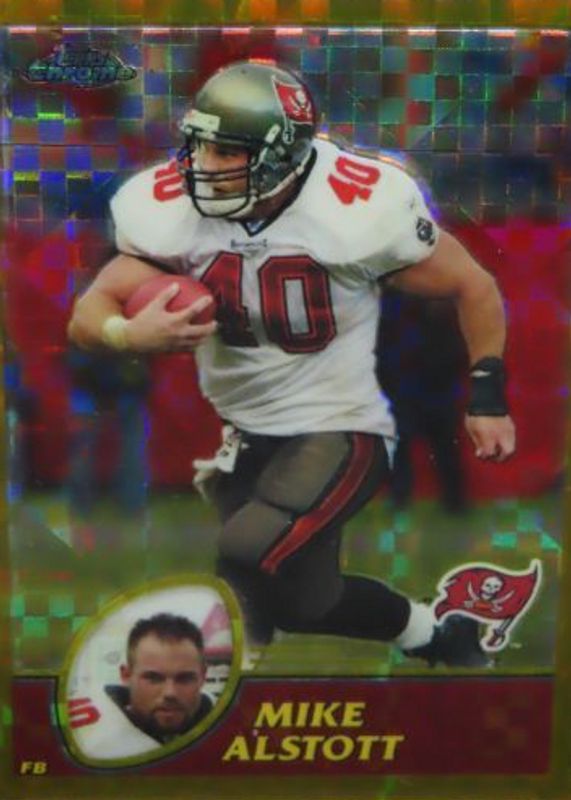 Mike Alstott's Football cards are available in at least 63 sets. Mike Alstott's biggest 7-day price movers are 2003 Topps Chrome #19 Gold X-Fractor /101, 1996 Fleer #142 Base, and 1996 Topps Finest #335 Bronze - Refractor.