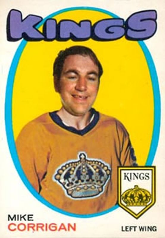 Mike Corrigan's Hockey cards are available in at least 10 sets. Mike Corrigan's biggest 7-day price movers are 1971 O-Pee-Chee #157 Base, 1972 O-Pee-Chee #74 Base, and 1972 Topps #89 Base.
