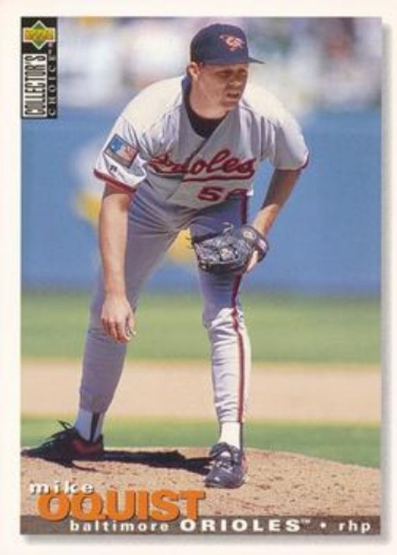Mike Oquist's Baseball cards are available in at least 8 sets. Mike Oquist's biggest 7-day price movers are 1995 Upper Deck Collector's Choice #343 Base, 1995 Upper Deck Collector's Choice #343 Silver Signatures, and 1995 Upper Deck Collector's Choice #343 Gold Signatures.
