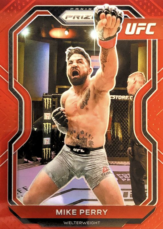 Mike Perry's MMA cards are available in at least 3 sets. Mike Perry's biggest 7-day price movers are 2021 Prizm UFC #19 Red /275, 2021 Prizm UFC #19 Silver, and 2021 Prizm UFC #19 Orange /99.