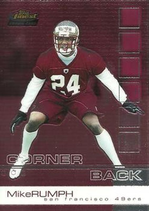 Mike Rumph's Football cards are available in at least 3 sets. Mike Rumph's biggest 7-day price movers are 2002 Topps Finest #100 Base, 2002 Topps Finest #100 Gold Refractor /25, and 2002 Topps Finest #100 Refractor /250.