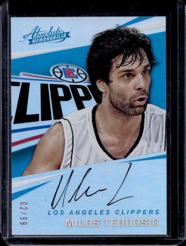 Milos Teodosic's Basketball cards are available in at least 26 sets. Milos Teodosic's biggest 7-day price movers are 2017 Absolute Memorabilia #AR-MTD Rookie Autographs /99, 2017 Optic #155 Checkerboard, and 2017 Optic #155 Fast Break Gold /10.