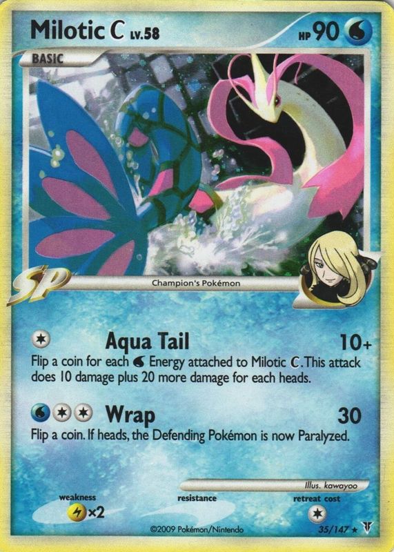 Milotic C's Pokemon cards are available in at least 1 sets. Milotic C's biggest 7-day price movers are 2009 Platinum: Supreme Victors #035/147 Base, 2009 Platinum: Supreme Victors #035/147 Promo (League Play), and 2009 Platinum: Supreme Victors #035/147 Reverse Holo.