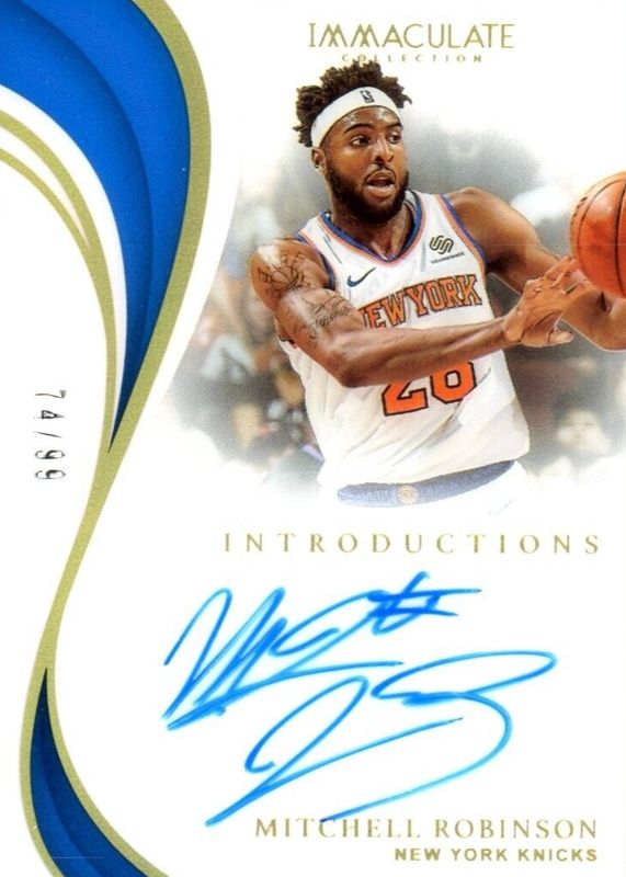 Mitchell Robinson's Basketball cards are available in at least 55 sets. Mitchell Robinson's biggest 7-day price movers are 2018 Prizm #227 Silver, 2018 Immaculate #INT-MRB Immaculate Introductions Autographs (/99), and 2023 Recon #34 Platinum /1.