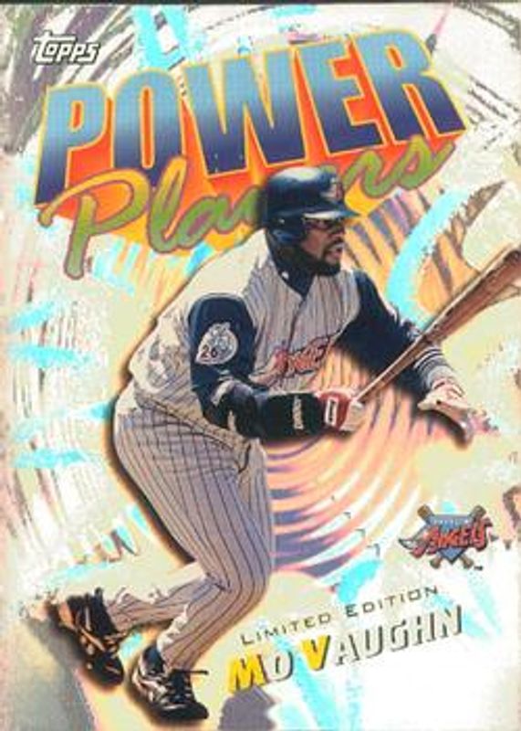 Mo Vaughn's Baseball cards are available in at least 101 sets. Mo Vaughn's biggest 7-day price movers are 2000 Topps #P6 Limited Power Players, 2000 Topps #P6 Power Players, and 2000 Topps #338 Limited Edition /4000.