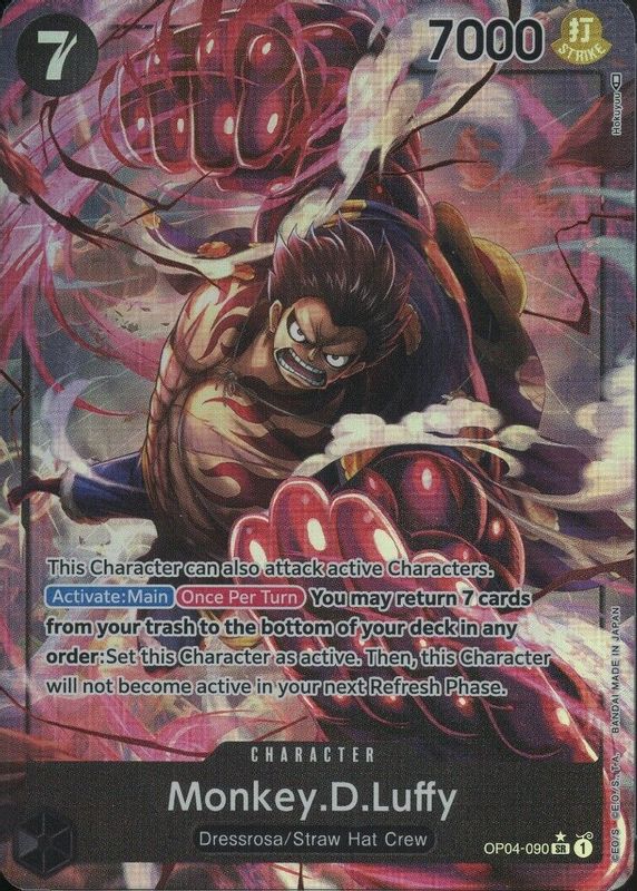 Monkey.D.Luffy's One Piece cards are available in at least 5 sets. Monkey.D.Luffy's biggest 7-day price movers are 2023 Kingdoms of Intrigue #OP04-090 Super Rare (Alternate Art), 2023 Pillars of Strength #ST01-012 Super Rare (Wanted), and 2022 Romance Dawn #OP01-003 Leader (Alternate Art).