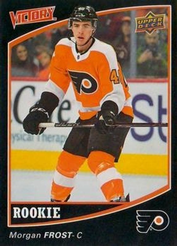 Morgan Frost's Hockey cards are available in at least 26 sets. Morgan Frost's biggest 7-day price movers are 2020 Upper Deck Spring Promotion #V-25 Victory Black Rookies, 2020 Upper Deck Spring Promotion #PS-MF Parkhurst Priority Signings /10, and 2019 Upper Deck Artifacts #VI Rookie Auto Exchange.