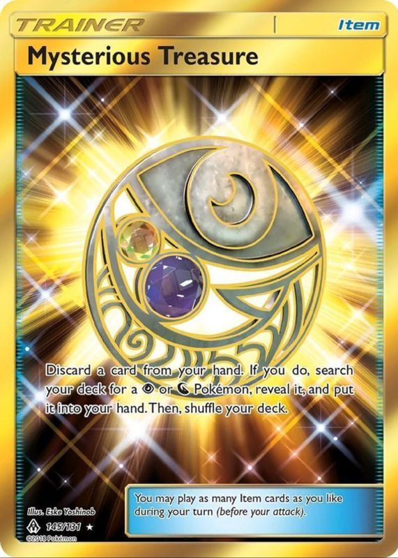 Mysterious Treasure's Pokemon cards are available in at least 4 sets. Mysterious Treasure's biggest 7-day price movers are 2018 Sun & Moon: Forbidden Light #145/131 Holo (Secret), 2018 Sun & Moon: Forbidden Light #113/131 Reverse Holo - League Cup STAFF, and 2018 Japanese Sun & Moon: Forbidden Light #109/094 Ultra Rare (Secret).