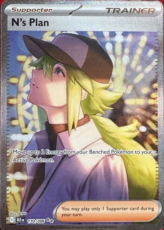 N's Plan's Pokemon cards are available in at least 1 sets. N's Plan's biggest 7-day price movers are 2025 Scarlet & Violet: Black Bolt #163/086 Ultra Rare (Full Art), 2025 Scarlet & Violet: Black Bolt #083/086 Base, and 2025 Scarlet & Violet: Black Bolt #083/086 Reverse Holo.