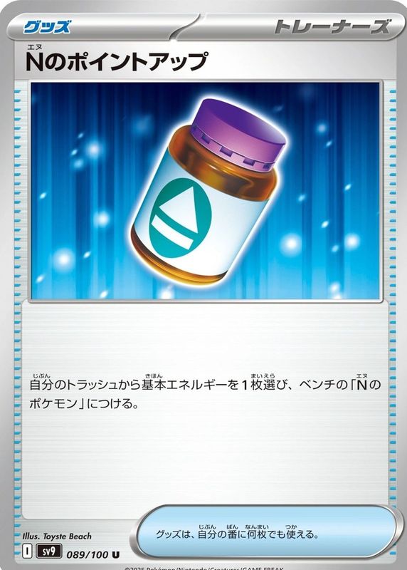N's PP Up's Pokemon cards are available in at least 4 sets. N's PP Up's biggest 7-day price movers are 2025 Japanese Mega: Mega Dream ex #214/193 Super Rare (Full Art), 2026 Mega Evolution: Ascended Heroes #195/217 Base, and 2025 Scarlet & Violet: Journey Together #153/159 Base.