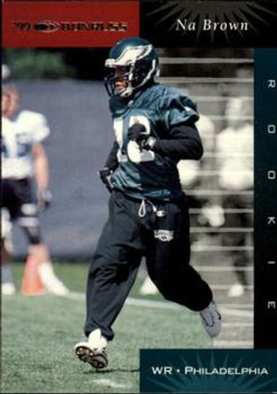 Na Brown's Football cards are available in at least 5 sets. Na Brown's biggest 7-day price movers are 1999 Donruss #179 Base, 1999 Donruss #179 Stat Line Career /223, and 1999 Donruss #179 Stat Line Season /14.