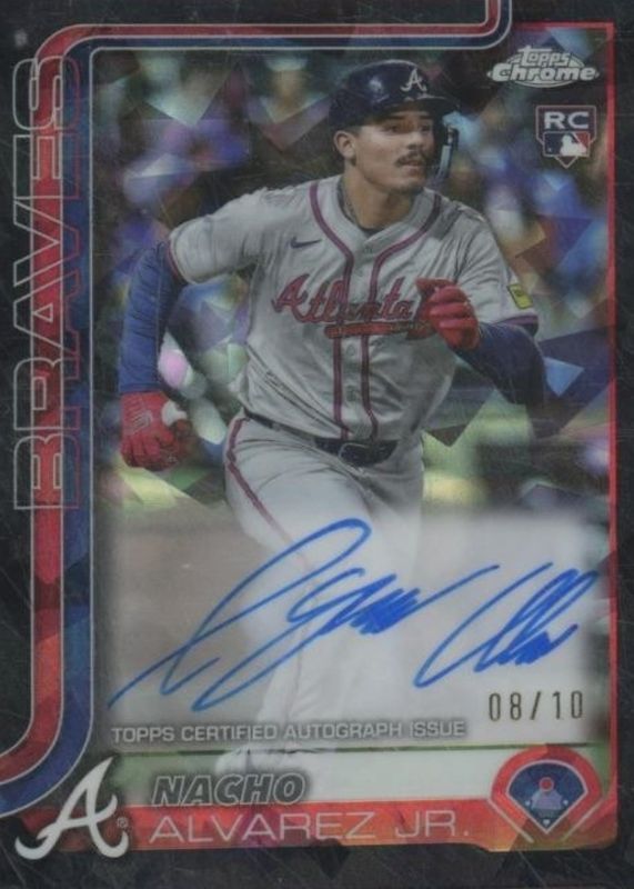 Nacho Alvarez Jr.'s Baseball cards are available in at least 18 sets. Nacho Alvarez Jr.'s biggest 7-day price movers are 2025 Topps Finest #140 Uncommon, 2025 Topps Chrome Sapphire Edition #RA-NA Rookie Autographs - Black /10, and 2025 Topps #223 Golden Mirror Image Variation /(SSP).