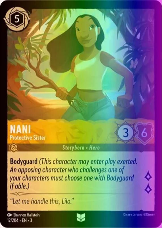 Nani - Protective Sister's Disney Lorcana cards are available in at least 2 sets. Nani - Protective Sister's biggest 7-day price movers are 2024 Into the Inklands #12/204 Cold Foil, 2024 Into the Inklands #12/204 Base, and 2025 Fabled #17/204 Base.