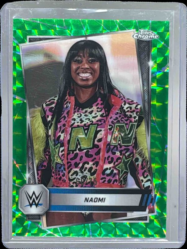 Naomi's Wrestling cards are available in at least 62 sets. Naomi's biggest 7-day price movers are 2025 Topps Chrome WWE #194 Neon Green Geometric Refractor /75, 2025 Topps Chrome WWE #194 Black Refractor /10, and 2025 Topps Chrome WWE #194 Black Geometric Refractor /2.