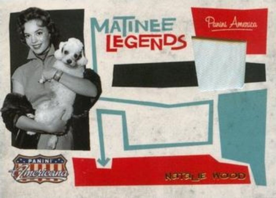 Natalie Wood's Pop Culture cards are available in at least 5 sets. Natalie Wood's biggest 7-day price movers are 2011 Panini Americana #10 Matinee Legends Material /5, 2011 Panini Americana #10 Matinee Legends Material Silver Screen /3, and 2011 Panini Americana #38 Movie Posters Material /499.