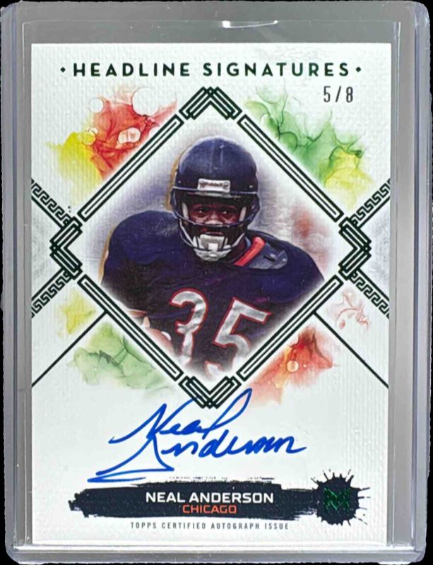 Neal Anderson's Football cards are available in at least 35 sets. Neal Anderson's biggest 7-day price movers are 2023 Topps Motif #HS-NA Headline Signatures - Winsor Green /8, 2023 Topps Motif #HS-NA Headline Signatures - Ultramarine Blue /20, and 2023 Topps Motif #HS-NA Headline Signatures /99.