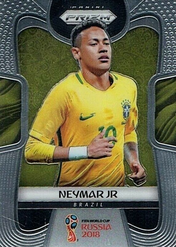 Neymar Jr.'s Soccer cards are available in at least 131 sets. Neymar Jr.'s biggest 7-day price movers are 2022 Panini World Cup Stickers #BRA17 Blue (1:2), 2018 Prizm World Cup #25 Base, and 2014 Prizm World Cup #112 Base.