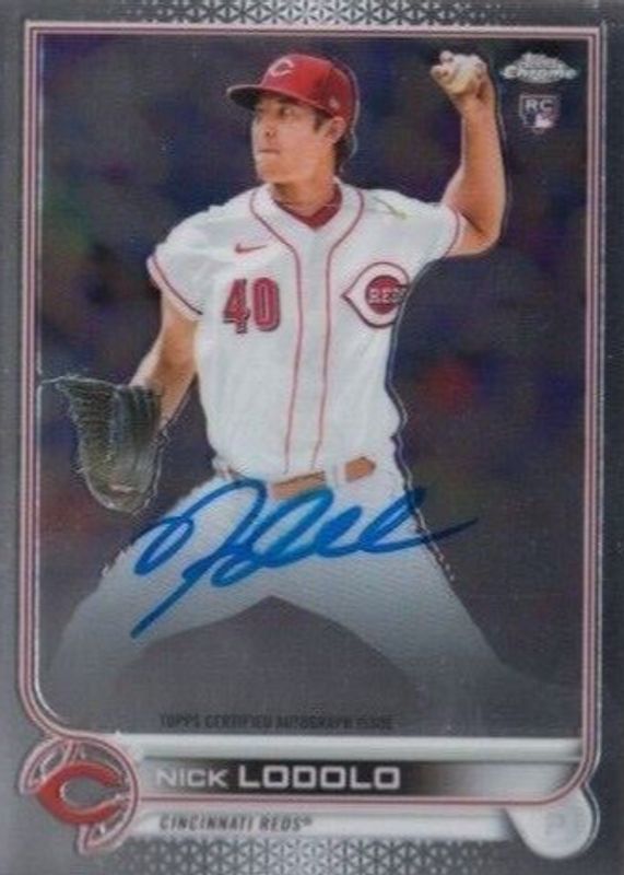 Nick Lodolo's Baseball cards are available in at least 28 sets. Nick Lodolo's biggest 7-day price movers are 2022 Topps Chrome #RA-NL Rookie Auto, 2023 Topps Big League #BLA-NL Big League Autographs - Foilfractor /1, and 2023 Topps Big League #BLA-NL Big League Autographs - Orange Foil /25.