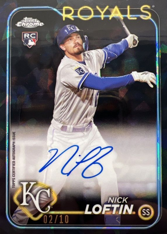 Nick Loftin's Baseball cards are available in at least 24 sets. Nick Loftin's biggest 7-day price movers are 2024 Topps Chrome Sapphire Edition #CSA-NL Autographs - Black /10, 2025 Topps Diamond Icons #NLA-NLO Autographed Nike Logo Patch /1, and 2024 Prizm #264 Green Ice.