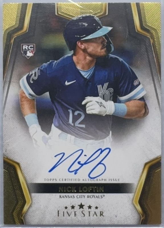 Nick Loftin's Baseball cards are available in at least 19 sets. Nick Loftin's biggest 7-day price movers are 2024 Topps Five Star #FSA-NL Base, 2024 Topps Five Star #FSA-NL Purple /50, and 2024 Topps Five Star #FSA-NL Aqua /75.