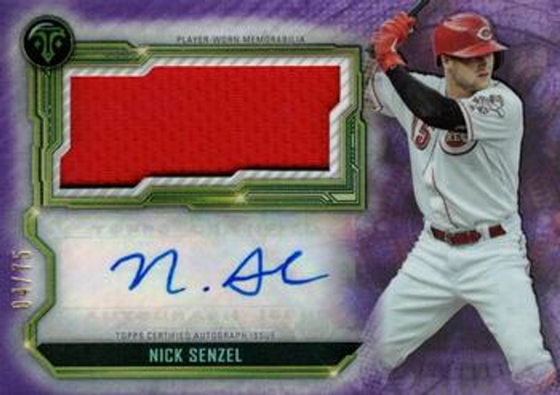 Nick Senzel's Baseball cards are available in at least 38 sets. Nick Senzel's biggest 7-day price movers are 2020 Topps Triple Threads #ASJR-NSE Autographs Single Jumbo Relics - Amethyst /75, 2020 Topps Triple Threads #RFPAR-NS Rookies & Future Phenoms - Sapphire /10, and 2020 Topps Triple Threads #ASJR-NSE Autographs Single Jumbo Relics - Sapphire /10.