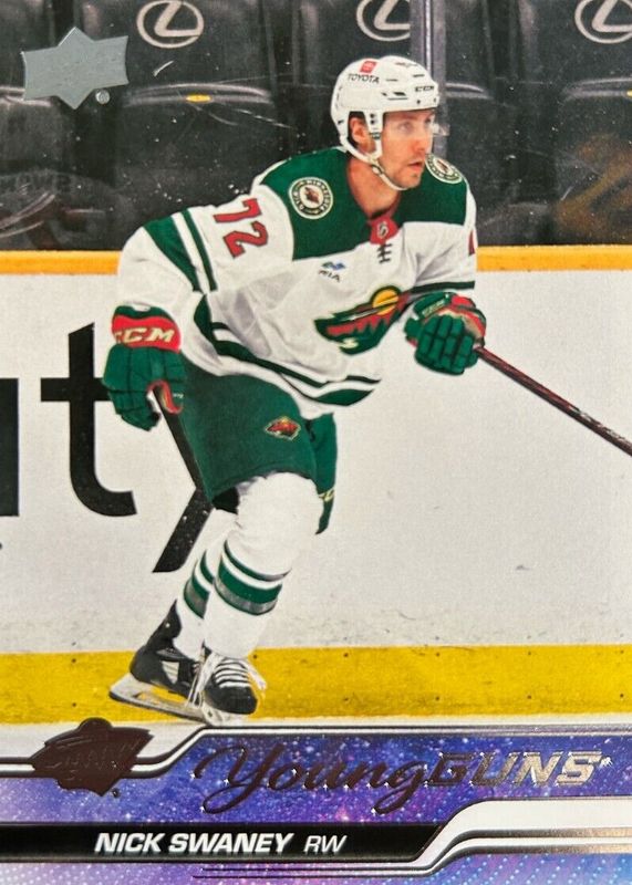 Nick Swaney's Hockey cards are available in at least 10 sets. Nick Swaney's biggest 7-day price movers are 2023 Upper Deck #458 Young Guns Base, 2023 SP Authentic #136 Future Watch Auto /999, and 2023 SP Authentic #136 Future Watch Auto - Inscriptions /50.