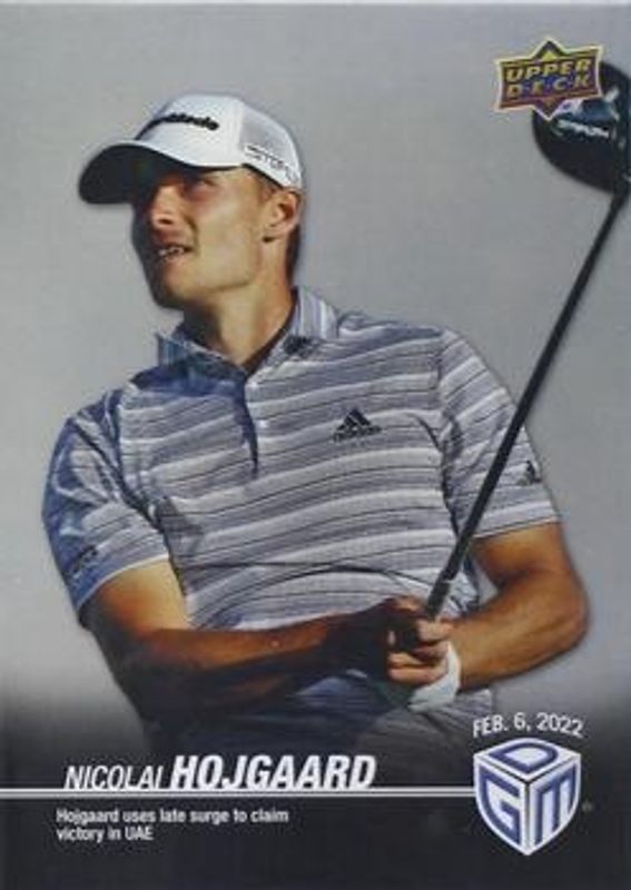 Nicolai Hojgaard's Multi-Sport cards are available in at least 2 sets. Nicolai Hojgaard's biggest 7-day price movers are 2022 Upper Deck Game Dated Moments #5 Silver, 2022 Upper Deck Game Dated Moments #5 Base, and 2022 Upper Deck Game Dated Moments #5 Gold.
